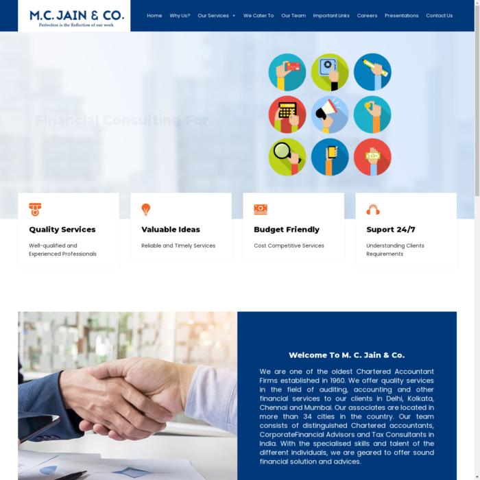 We are one of the oldest Chartered Accountant Firms established in 1960. We offer quality services in the field of auditing, accounting and other financial services to our clients in Delhi, Kolkata, Chennai and Mumbai. Our associates are located in more than 34 cities in the country. Our team consists of distinguished Chartered accountants, CorporateFinancial Advisors and Tax Consultants in India. With the specialised skills and talent of the different individuals, we are geared to offer sound financial solution and advices.