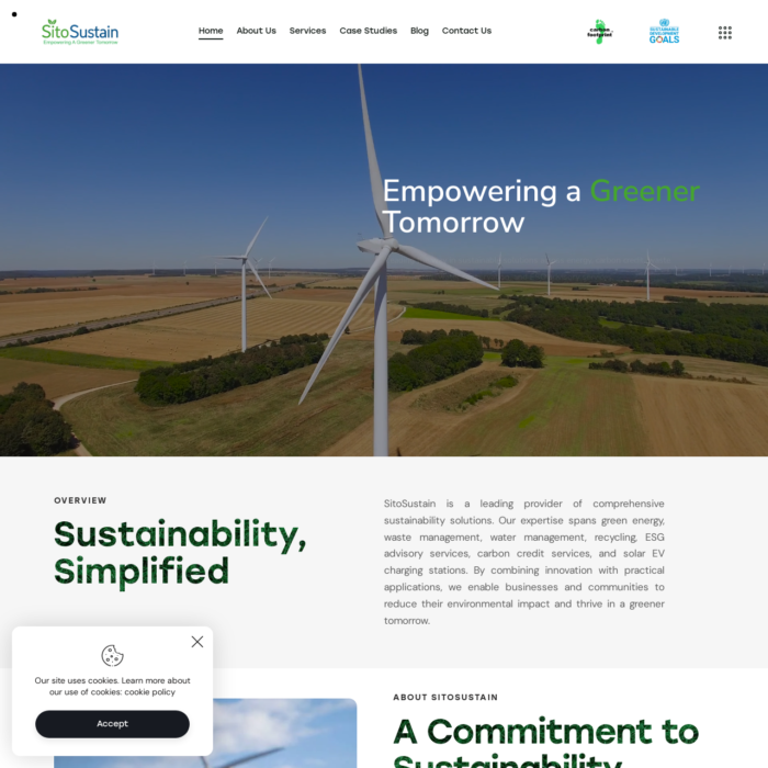 SitoSustain is a leading provider of comprehensive sustainability solutions. Our expertise spans green energy, waste management, water management, recycling, ESG advisory services, carbon credit services, and solar EV charging stations. By combining innovation with practical applications, we enable businesses and communities to reduce their environmental impact and thrive in a greener tomorrow.